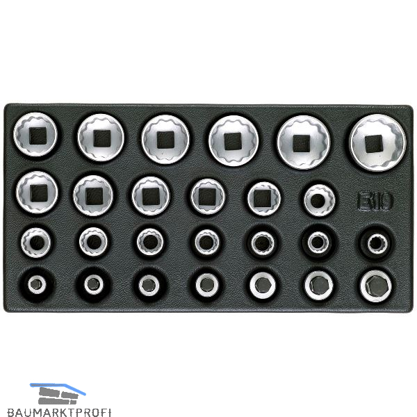 Inhalt: je 1 x Steckschlüsseleinsatz 1/2" UD-Profil SW. 10, 11, 12, 13, 14, 15, 16, 17, 18, 19, 21, 22, 23, 24, 26, 27, 28, 30, 32 mm,