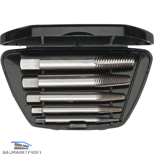 Zum Entfernen abgebrochener Schrauben, Gewindebolzen und Rohrenden. Aus hochwertigem Chrom-Vanadium-Stahl, vergütet, 54-56 HRC. Geringere Ausdrehmomente durch die neue Querschnitts-Geometrie. Geringere Bohrtiefe durch optimierte Gewindelänge. Mehr Sicherheit für Anwender und Bauteil. In Kunststoffbox.