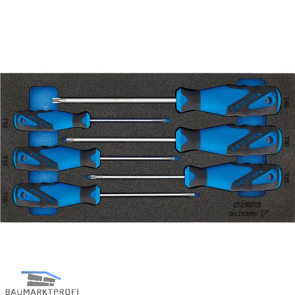 Inhalt: je 1 x 3K-Schraubendreher Innen-Torx® TX8, TX10, TX15, TX20, TX25, TX30.