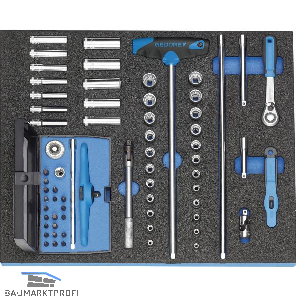 In 2/4 Check-Tool-Modul. Für XL-Volumen Schubladen. Das Werkzeug liegt verrutschsicher in seinem Nest und ist vor Beschädigungen geschützt. Griffmulden erleichtern das Herausnehmen des Werkzeuges. Deutlich sichtbare Werkzeugkonturen erleichtern das Zurücklegen in das richtige Nest. Resistent gegen Öle und Fette.