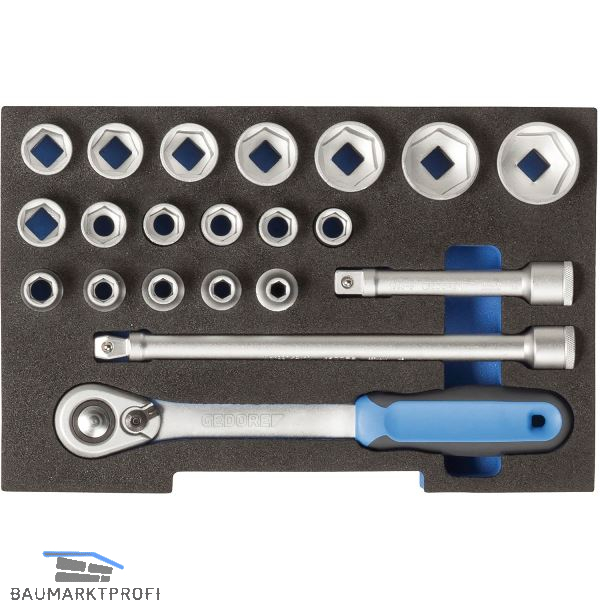 In 1/2 L-BOXX® 136 Schaumstoffeinlage Modul. Hand-Steckschlüsseleinsatz mit Innenvierkantantrieb C 12,5 DIN 3120 - ISO 1174. Mit Kugelfangrille, griffig gerändelt.