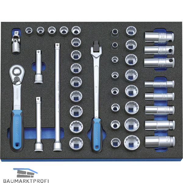 In 2/4 Check-Tool-Modul. Für XL-Volumen Schubladen. Das Werkzeug liegt verrutschsicher in seinem Nest und ist vor Beschädigungen geschützt. Griffmulden erleichtern das Herausnehmen des Werkzeuges. Deutlich sichtbare Werkzeugkonturen erleichtern das Zurücklegen in das richtige Nest. Resistent gegen Öle und Fette.
