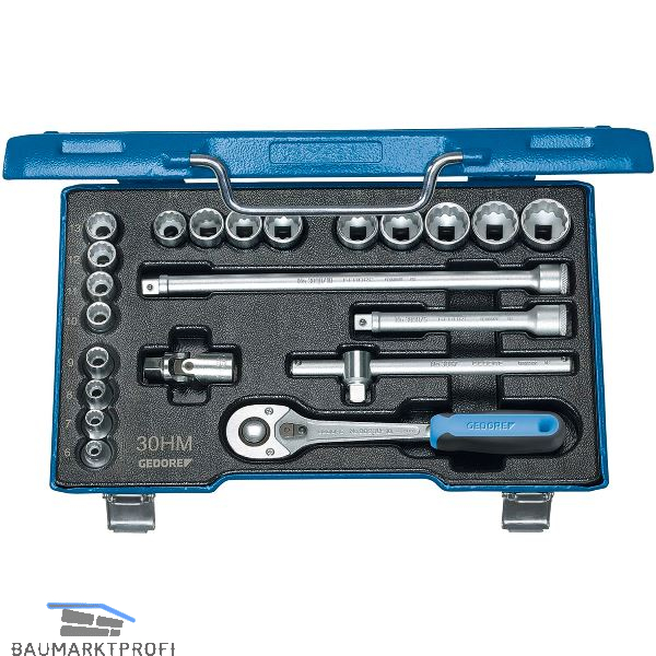 Mit geschmiedeten, vergüteten 6-kant-Unit Drive-Profil-Einsätzen und Betätigungswerkzeugen in blauer Stahlblechkassette.