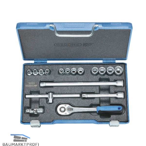Mit geschmiedeten, vergüteten 12-kant-Unit Drive-Profil-Einsätzen und Betätigungswerkzeugen in blauer Stahlblechkassette.
