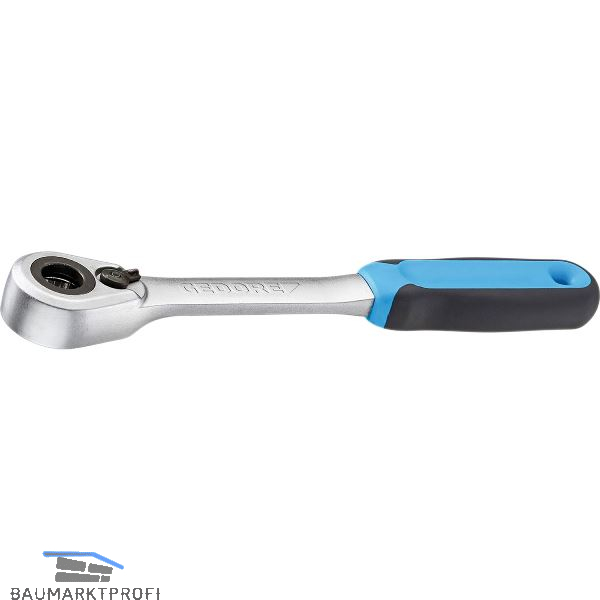Besonders für Gewindebolzen und enge Bauräume geeignet. Mit Innensechskantantrieb. Drehmomente nach DIN 3122 werden übertroffen. Kleiner, tropfenförmiger Kopf für engste Schraubstellen. Mit Druckringauslösung. Feinverzahnt (60 Zähne), mit Umschalthebel. Rückschwenkwinkel 6 Grad. Rutschfester 2-Komponenten-Griff mit Aufhängeloch. Für handbetätigte Steckschlüsseleinsätze mit Außensechskantantrieb, No. 19 SK.