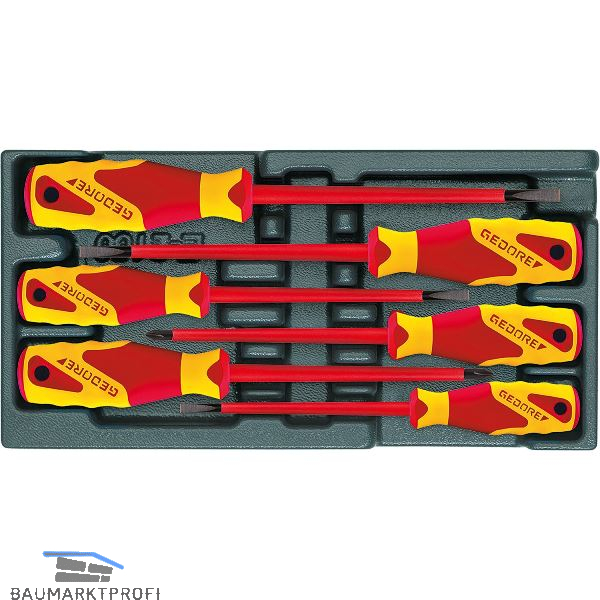 Inhalt: je 1 x VDE-Schraubendreher Schlitz 4, 5.5, 6.5, 8 mm,