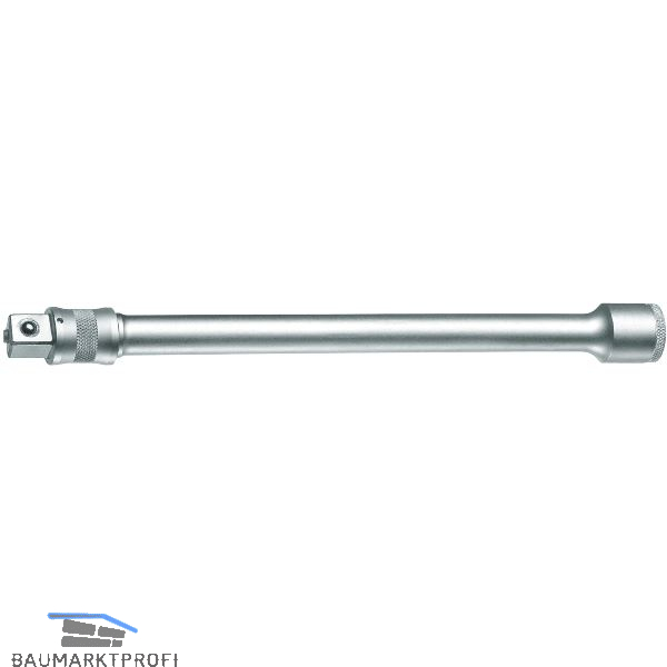 Erleichtert Zugang bei tiefsitzenden Schrauben, mit Sicherungsring gegen unbeabsichtigtes Lösen. Für handbetätigte Steckschlüsseleinsätze mit Verbindungsvierkant C 12,5 DIN 3120 - ISO 1174, mit Kugel-Arretierung.