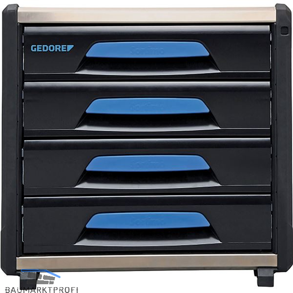 4 Schubladen mit Vollauszug geeignet für GEDORE 1500 ES/1500 CT Module. Leichter und stabiler Alu-Kunststoffmix. Kompatibel mit Sortimo® Fahrzeugeinrichtungen und Ladungssicherung. Crash getestet. Tragkraft pro Schublade 30 kg.