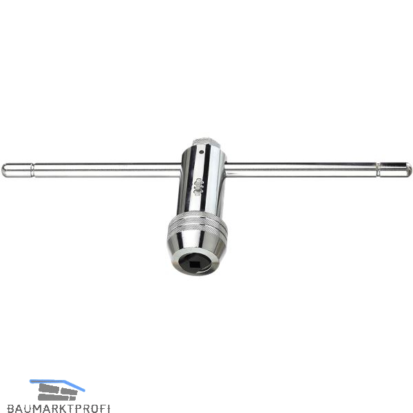 Zur Betätigung der Schraubenausdreher (No. 8551 und 8551 S) an schwer zugänglichen Stellen. Umschaltbar, Rechts- und Linksgang. Verschiebbarer Quergriff. Mit Zweibacken-Spannfutter zur Aufnahme von Vierkantschäften. Ganzstahlausführung, verchromt.