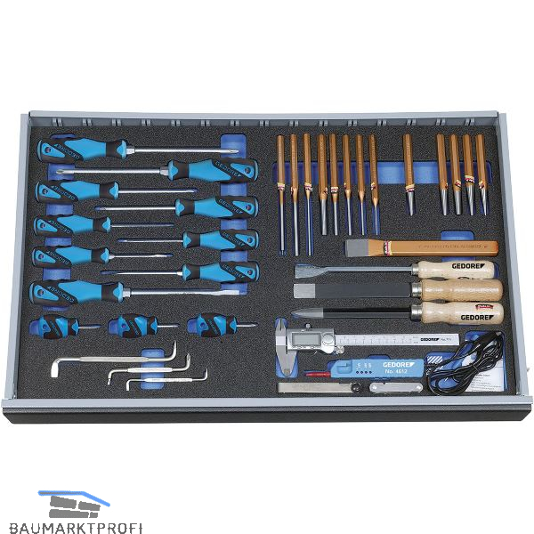 In 4/4 Check-Tool-Modul. Für XL-Volumen Schubladen. Das Werkzeug liegt verrutschsicher in seinem Nest und ist vor Beschädigungen geschützt. Griffmulden erleichtern das Herausnehmen des Werkzeuges. Deutlich sichtbare Werkzeugkonturen erleichtern das Zurücklegen in das richtige Nest. Resistent gegen Öle und Fette.