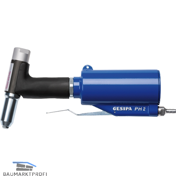 Das pneumatisch-hydraulische Blindnietsetzgerät bietet flexibles Arbeiten durch den um 360º verstellbaren Alluminium-Hydraulikkopf mit verschleißfester Zylinderfläche. Das Schnell-Entlüftungsventil sorgt für einen schnellen Rücklauf und eine hohe Arbeitsfolge. Die PH II verfügt außerdem über eine geräuscharme Pneumatikschaltung und einen einfachen, störungsarmen Ventilaufbau. Die günstige Schwerpunktlage und Griffgestaltung ermöglichen ein ermüdungsfreies Arbeiten. Kolben aus gehärtetem und hartverchromten Stahl macht das Gerät leichtgängig und verschleißfest, die verschleißarme Kompaktdichtung mit großer Abstreifwirkung sorgt für hohe Standzeit. Schlauchanschluss 1/4".