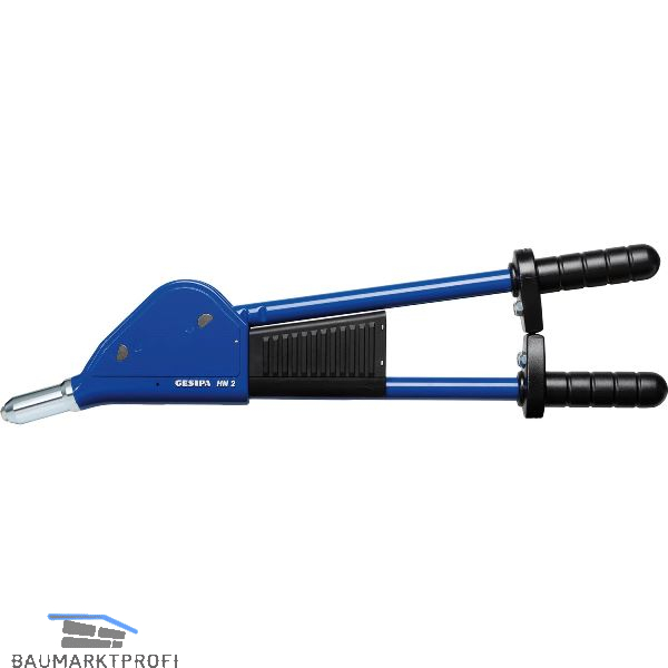 Zangengehäuse und Griff aus hochwertigem Aluminiumdruckguss, Gelenkbolzen verdrehsicher gelagert und mit innenliegender Axialsicherung verschleißfest und leichtgängig, Zahnsegmentübersetzung mit günstiger Hebelarmanordnung reduziert Kraftaufwand und bewirkt Abrissdämpfung. Feststehender Gehäusehebel und handgerechte Griffgestaltung für einfache und komfortable Handhabung. Durch Betätigungshebel ist mehrmaliges Nachfassen auch am Werkstück problemlos möglich, dadurch besonders vorteilhaft bei überlangen Blindnieten. Leichtgängige, auf Messingplatte gelagerte Zahnstange, Nietdornauffangbehälter schwenkbar am Gehäuse angebracht, sicher und einfach zu entleeren.