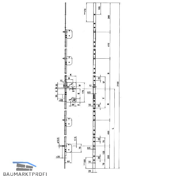 Stulp (L x B x S) (mm): 2100 x 20 x 4