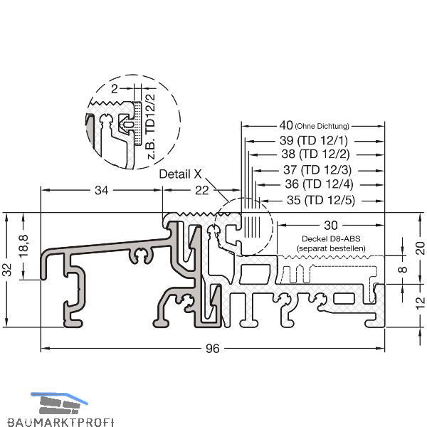 GUTMANN Türschwelle WESER 96/32 TI L=6000 mm Alu silber eloxiert