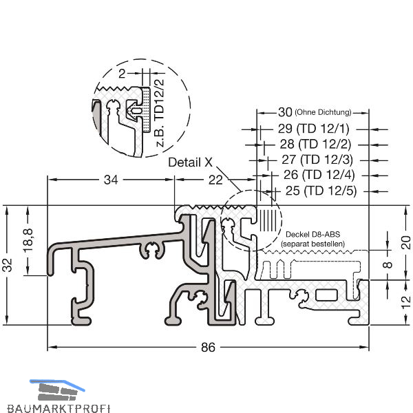 GUTMANN Türschwelle Weser 86/32 TI L=6000 mm auf Maß Alu silber eloxiert
