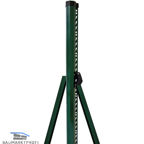 Aus Spezialprofil. Zum Betonieren in die Erde oder Aufschrauben. Die Strebe ist für ebenen Boden gerichtet und sollte im oberen 1/3 montiert werden.