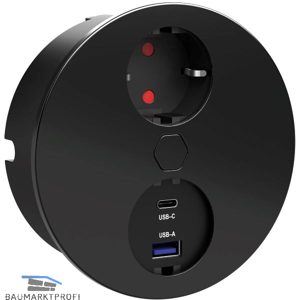 HPF Einbausteckdose Duplex-R, 1 Stk. Schukosteckdose, + USB-Charger, schwarz