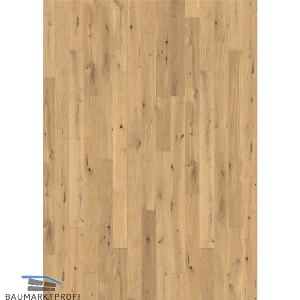 3-Schicht-Aufbau mit Vollholz-Stabmittellage. Oberfläche: naturaLin plus Oberfläche.