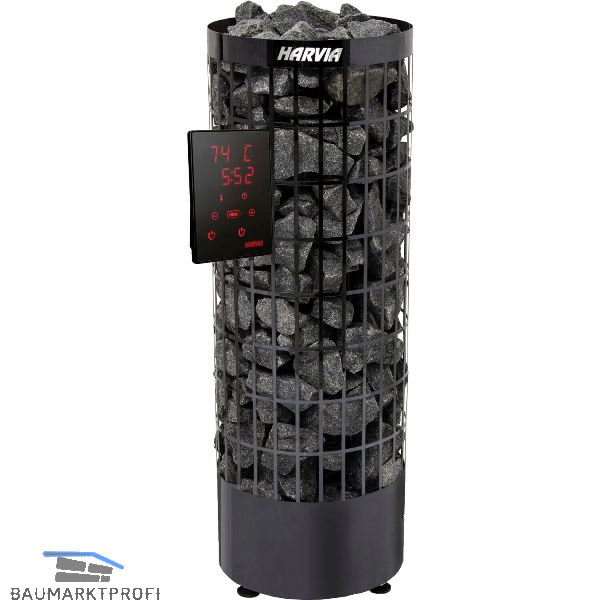Der Saunaofen Cilindro erzeugt erstklassigen Dampf in großen Saunen sowie in Saunen, in denen Glasoberflächen die Anforderungen an die Heizleistung erhöhen.