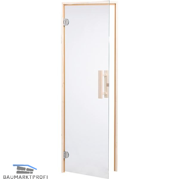 Marke: Harvia Type: DS80-3CS-590 Außenmaß (mm): 1960 x 650 x 80 Glasstärke (mm): 8 Ausführung: Klarglas ohne Schwelle Türanschlag: links oder rechts