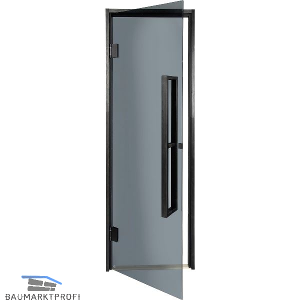 Marke: Harvia Type: DS80B-3GS-590 Außenmaß (mm): 1960 x 650 x 80 Glasstärke (mm): 8 Ausführung: Grauglas ohne Schwelle Türanschlag: links oder rechts