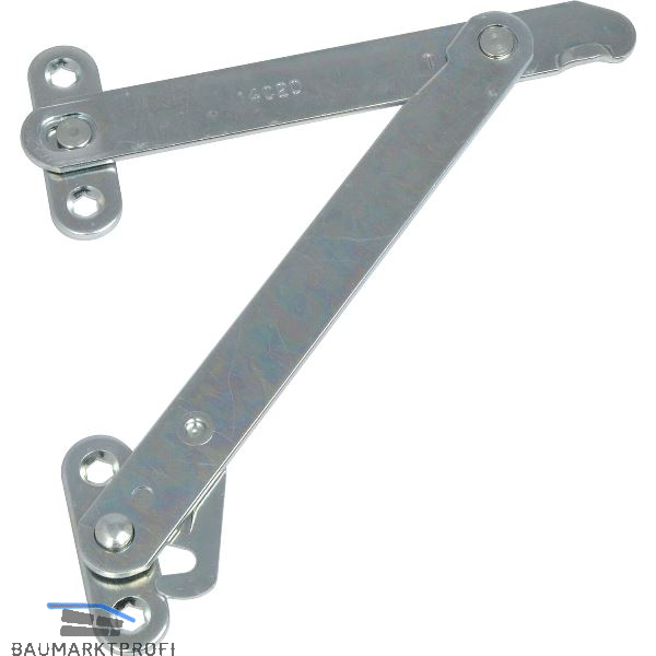 Einbauhinweis: Die Scheren sind so zu montieren, dass zwischen Offenstellung des Oberlichtöffners und der Sicherungsstellung der Scheren ein Sicherheitsbereich von 50 bis 100 mm liegt.
