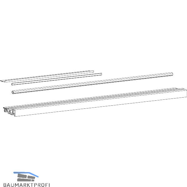 Lieferumfang: 1 Grundkörper Bodenschwelle mit vormontiertem Wetterprofil 1 Laufschiene Nr. 23, Höhe 15 mm 1 Trittschutzprofil geriffelt 1 Dichtung für Trittschutzprofil