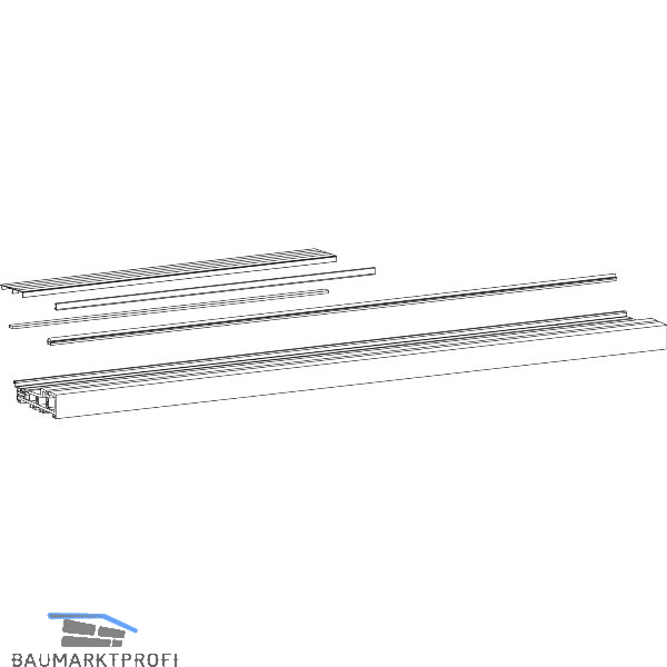 Lieferumfang: 1 Grundkörper Bodenschwelle mit vormontiertem Wetterprofil 1 Laufschiene Nr. 24, Höhe 5 mm 1 Trittschutzprofil geriffelt 1 Dichtung für Trittschutzprofil 1 Keder comfort