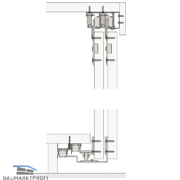 Hawa Combino 65 H MS obenlaufend ist der ideale Beschlag für zwei bis drei obenlaufende Holztüren bis 65 kg, die sich im Design Kombifront spielend am großzügig ausgelegten Schrank bewegen lassen. Die Laufschiene wird aufgeschraubt. Die Lauftechnik wird mit einer Holz-Clipblende unsichtbar gemacht. Die Justierung erfolgt über die bewährte Hawa-Exzenterhöhenverstellung.