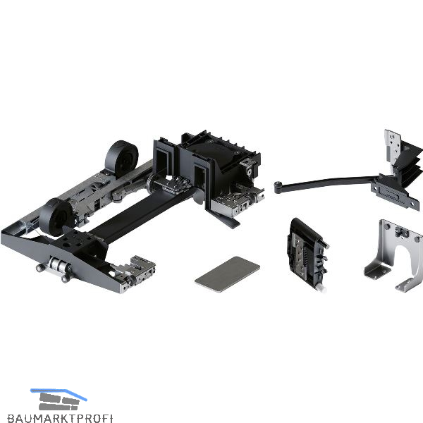 Beschlag zum Drehen, Falten und seitlich Einschieben von Holztüren.