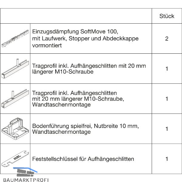2 Einzugsdämpfungen SoftMove 100 inkl. Laufwerk, Stopper und Abdeckkappe