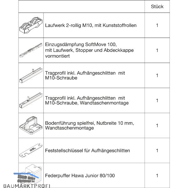 1 Einzugsdämpfung SoftMove 100 inkl. Laufwerk, Stopper und Abdeckkappe