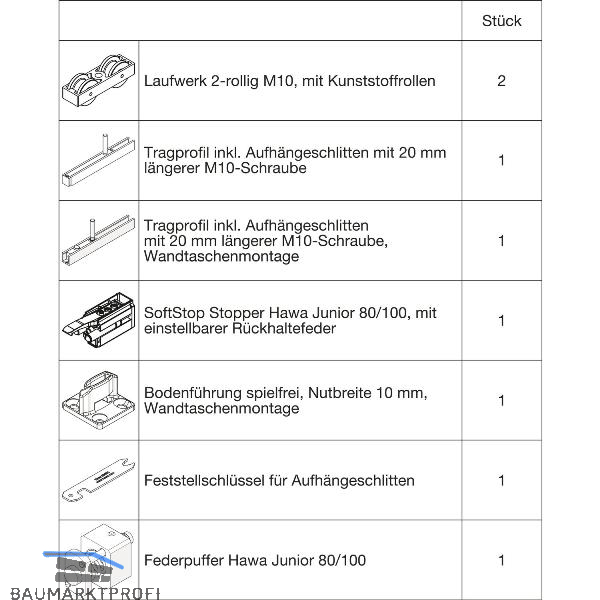 Ohne Laufschiene. Für minimale Einbauhöhe. Für Deckenintegration, mit 20 mm längerer Tragschraube. Wandtaschenmontage.