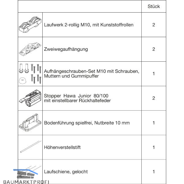 HAWA Junior 100/Z Beschlagset Holz Laufschiene L=2500 mm 2 FS Standard silber