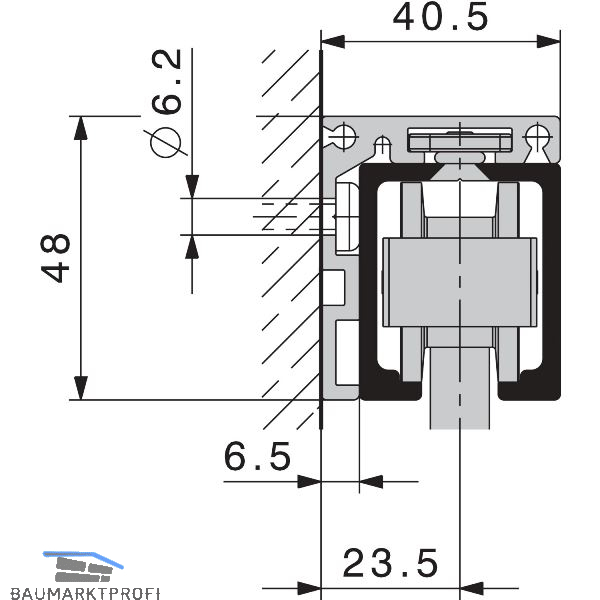 Für Wandmontage. In Kombination mit der Laufschiene HAWA-Junior 80/100 Decke.