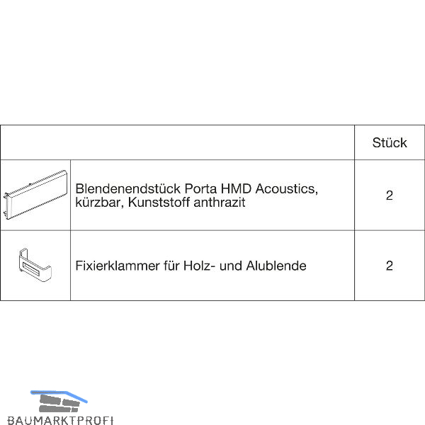 Lieferumfang:2 Abdeckkappen2 Fixierklammern für Holz- und Aluminiumblende