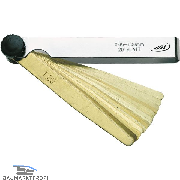 Einklappbar in Metallscheide. Blätter aus Messing einzeln beziffert, konisch, antimagnetisch, mit Feststellmutter.