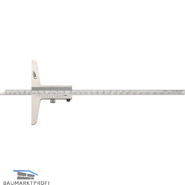 Tiefenmessschieber, rostfreier Stahl, Nonius + Skala mattverchromt, gerade Messstange.