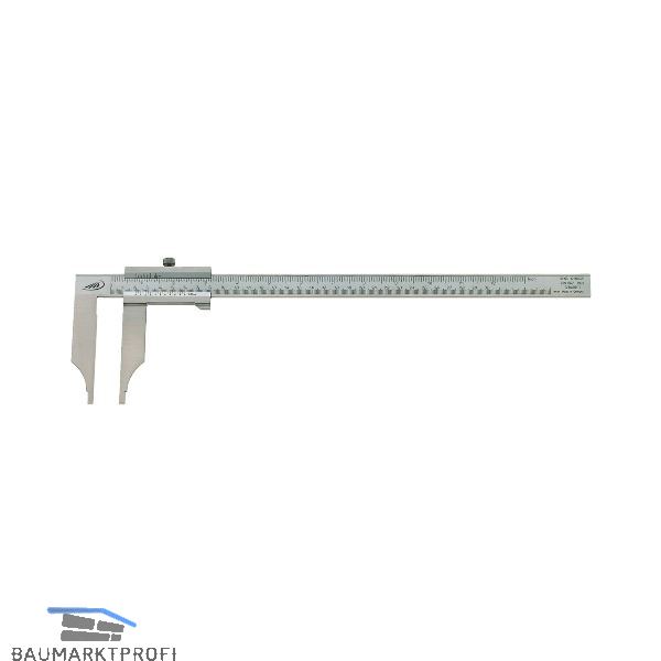 Mit langen Messschnäbeln, aus rostfreiem Stahl, Nonius und Skala mattverchromt, ohne Messerspitzen, ohne Feineinstellung.