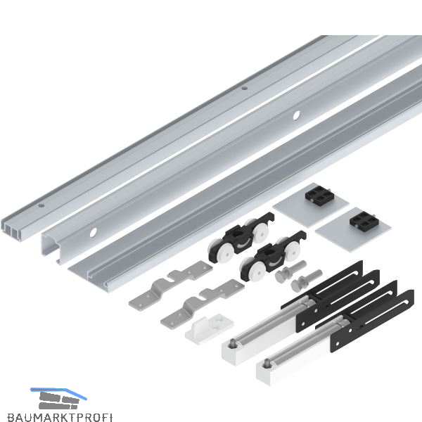 HELM 53 Beschlagset Wand Holz 50 kg Laufschiene L=1700 mm Blende Dämpfung silber