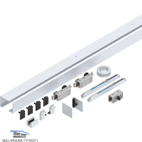 Klemmbefestigung. Mit Laufschiene, mit Blende, mit Einzugsdämfpung beidseitig und Muschelgriff.