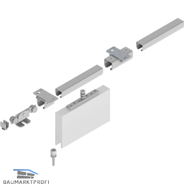 komfortabel konfektionierte Komplettgarnitur für 1 Schiebetor (Deckenmontage). Für größere Tore sind Erweiterungssets zu verwenden.
