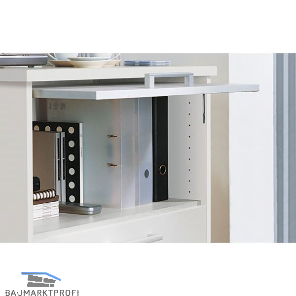 - Die einliegende Klappe ist einfach montierbar und verschwindet beim Öffnen nahezu komplett im Schrank
