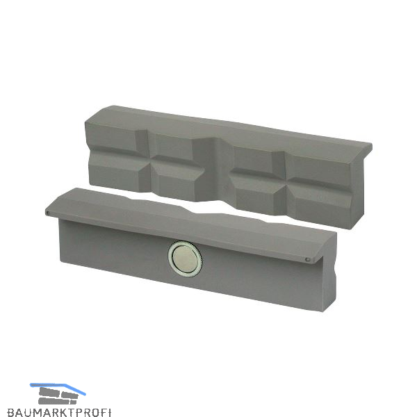 Mit Magnet. Zum Spannen von empfindlichen runden und ovalen Werkstücken. Die Backen sind aus Polyurethan. Dieses sehr elastische, widerstandsfähige und alterungsbeständige Material nimmt nach Verformung durch Druck die ursprüngliche Form wieder an. Durch eingearbeitete Prismen in unterschiedlicher Größe werden die Werkstücke sicher gehalten.