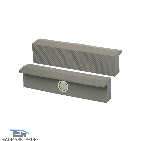 Mit Magnet. Zum Spannen von empfindlichen Werkstücken aller Art. Die Backen sind aus Polyurethan. Dieses sehr elastische, widerstandsfähige und alterungsbeständige Material nimmt nach Verformung durch Druck die ursprüngliche Form wieder an. Die Riffelung greift in die Oberfläche der eingespannten Teile ohne sie zu beschädigen.