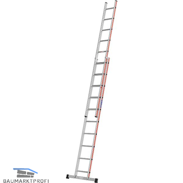 Leiterinnenbreite 300 mm (Oberteil), Sprossen aus Walzprofil, massive Führungsbeschläge aus Stahl, Tragkraft 150 kg.