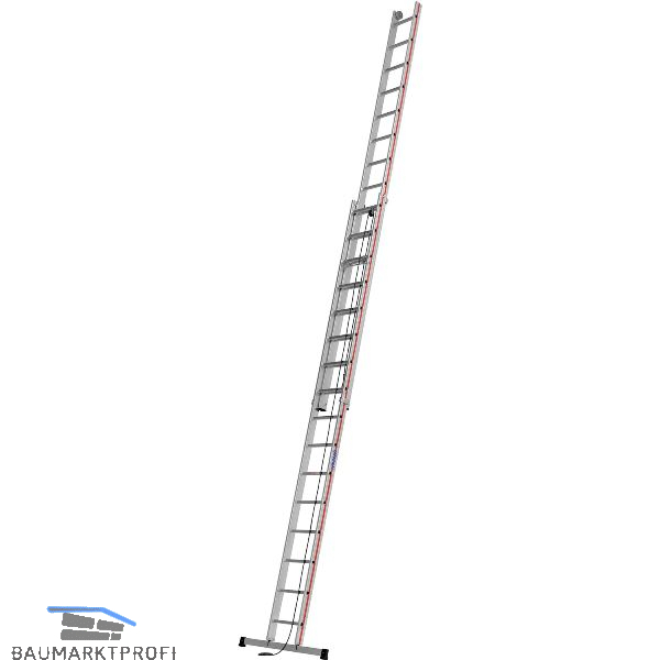 Leiterinnenbreite 300 mm (Oberteil), Sprossen aus Walzprofil. Handliches Seil ø 10 mm zur sicheren Höhenverstellung. Mit Wandlaufrollen aus hochwertigem Kunststoff. Massive Führungsbeschläge aus Stahl. Tragkraft 150 kg.