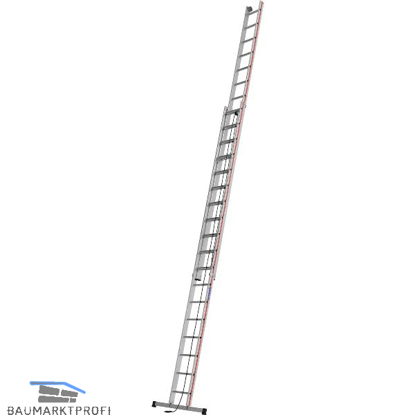 Leiterinnenbreite 300 mm (Oberteil), Sprossen aus Walzprofil. Handliches Seil ø 10 mm zur sicheren Höhenverstellung. Mit Wandlaufrollen aus hochwertigem Kunststoff. Massive Führungsbeschläge aus Stahl. Tragkraft 150 kg.