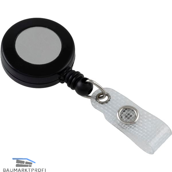 IDENTA Kartenjojo rund mit Gürtelclip Silberdisk Nylonschnur L=600 mm schwarz