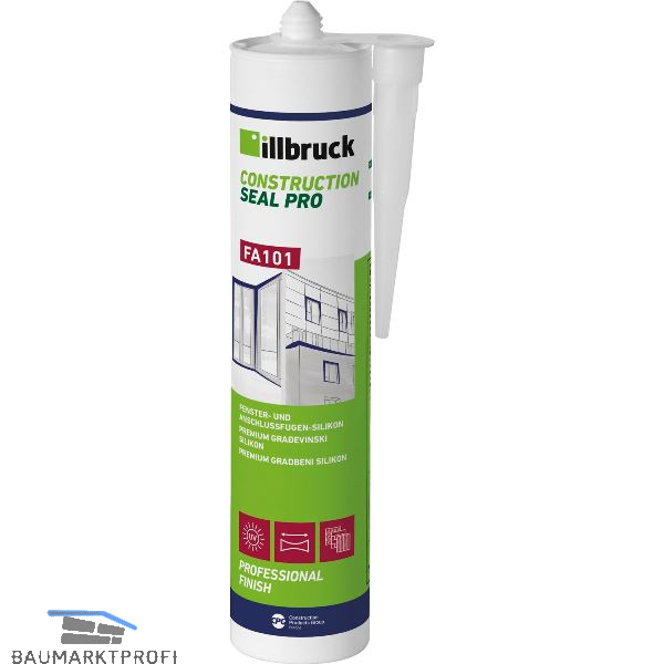 Anwendungsgebiete:illbruck FA101 Fenster- und Anschlussfugen-Silikon ist speziell für die Fensterversiegelung, Anschlussfugen und andere Bewegungsfugen geeignet. Es bietet eine dauerhafte und gute Haftung auf den meisten porengeschlossenen Untergründen wie z.B. eloxiertem Aluminium, Polyacrylaten, Polycarbonaten, lackiertem oder lasiertem Holz, Glas und glasierten Oberflächen.